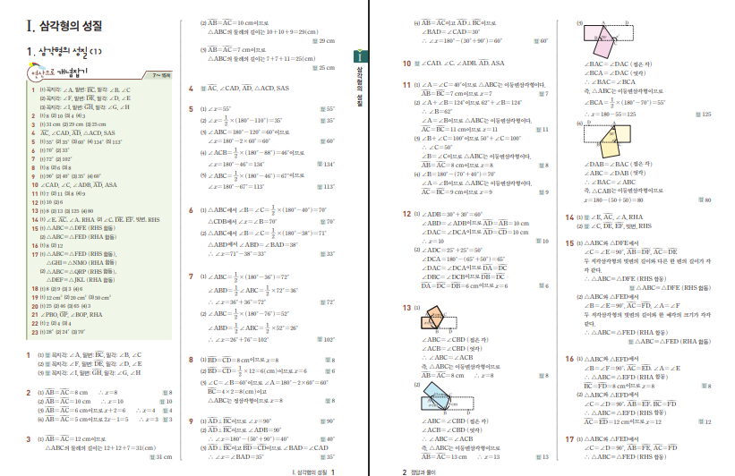 구성은 개념 확인 문제부터 유형 문제, 단원 마무리 문제까지 단계적으로 이루어져 있어 학습 흐름이 자연스럽습니다. 문제 난이도가 점진적으로 올라가기 때문에 부담 없이 시작할 수 있으며, 다양한 문제를 통해 실전 감각을 키울 수 있습니다. 리뷰를 보면 도형과 확률 단원까지 균형 있게 문제 구성이 되어 있어 시험 대비에 효과적이라는 평가가 있으며, 반복 학습을 통해 실력을 안정적으로 끌어올릴 수 있다는 의견이 있습니다.