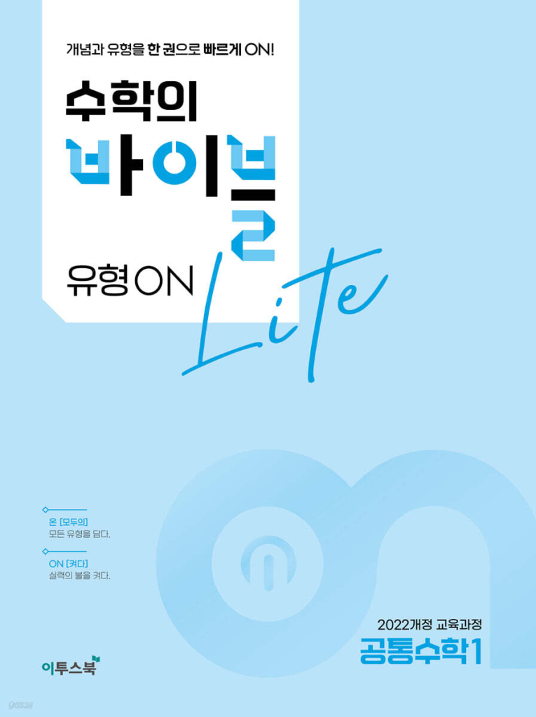 해당 교재 시리즈는 해설지가 자세한 것으로 유명합니다. 혼자 공부할때도 자세한 풀이를 확인할 수 있기에 유용합니다. 2022개정 교육과정을 반영하여 새롭게 출시되었으므로 표지를 꼭 체크하시길 바랍니다. 본문에 22개정 수학의 바이블 유형 ON 라이트 공통수학1 답지 PDF 파일을 첨부해두었으니 필요하신 분들은 이용하시길 바랍니다.