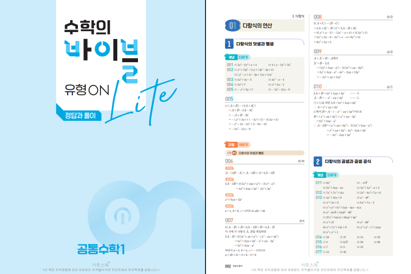 수학의 바이블 유형 ON 라이트 공통수학1 답지 (2026)