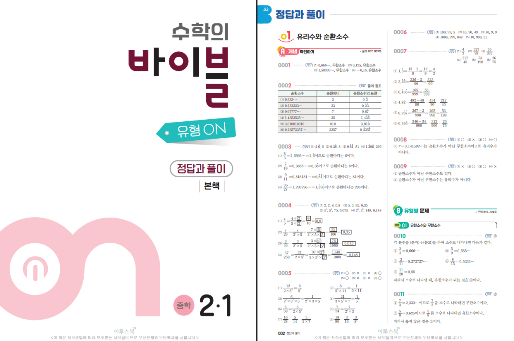 수학의 바이블 유형ON 중학수학 2-1 답지 (2026)