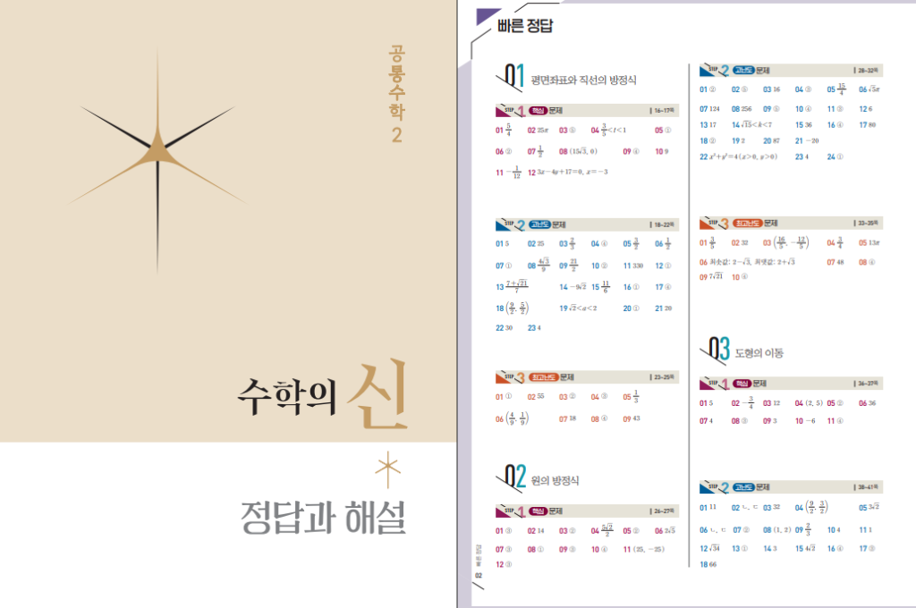 수학의 신 고등 공통수학 2(2025)는 2022 개정 교육과정의 범위를 상위권 수준으로 압축·심화한 문제 해결서입니다. 권두에 핵심 및 실전 개념을 모아 단원 학습의 출발점을 분명히 하고, 본문에서는 난도를 점층적으로 끌어올리는 구성으로 내신과 수능형 사고를 동시에 겨냥했습니다. 난이도 표기가 ‘어려움’인 만큼 개념 1회독을 끝낸 뒤 1등급을 노리는 학습자에게 특히 적합합니다. 실제 이용자 평도 높아 신뢰감을 더해 줍니다. 아래 수학의신 공통수학 2 답지 pdf 파일을 올려두도록 하겠습니다.