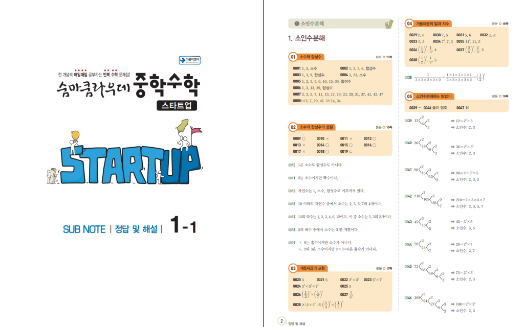 숨마쿰라우데 중학수학 스타트업 1-1 답지 (2026)