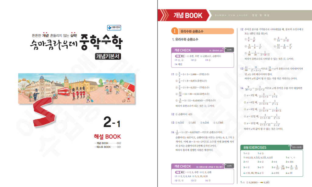 숨마쿰라우데 중학수학 개념기본서 2-1 답지 (2026)