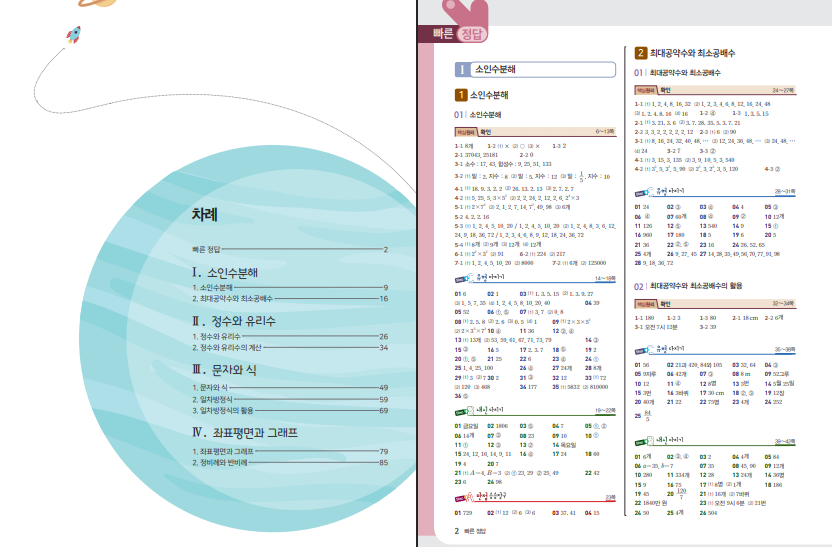 이 교재는 소인수분해를 시작으로 정수와 유리수, 문자와 식, 일차방정식, 좌표평면과 그래프까지 중1 1학기 핵심 단원을 체계적으로 다루고 있습니다. 각 단원은 개념의 원리를 중심으로 자세히 설명되어 있으며, 이후 문제를 통해 이를 확인하는 구조로 구성되어 있습니다. 문제 풀이 후 바로 해설을 확인하면서 개념을 다시 정리하면 학습 효과를 더욱 높일 수 있습니다. 아래 링크로 원리해설 수학 중등 1-1 답지를 열람할 수 있습니다.