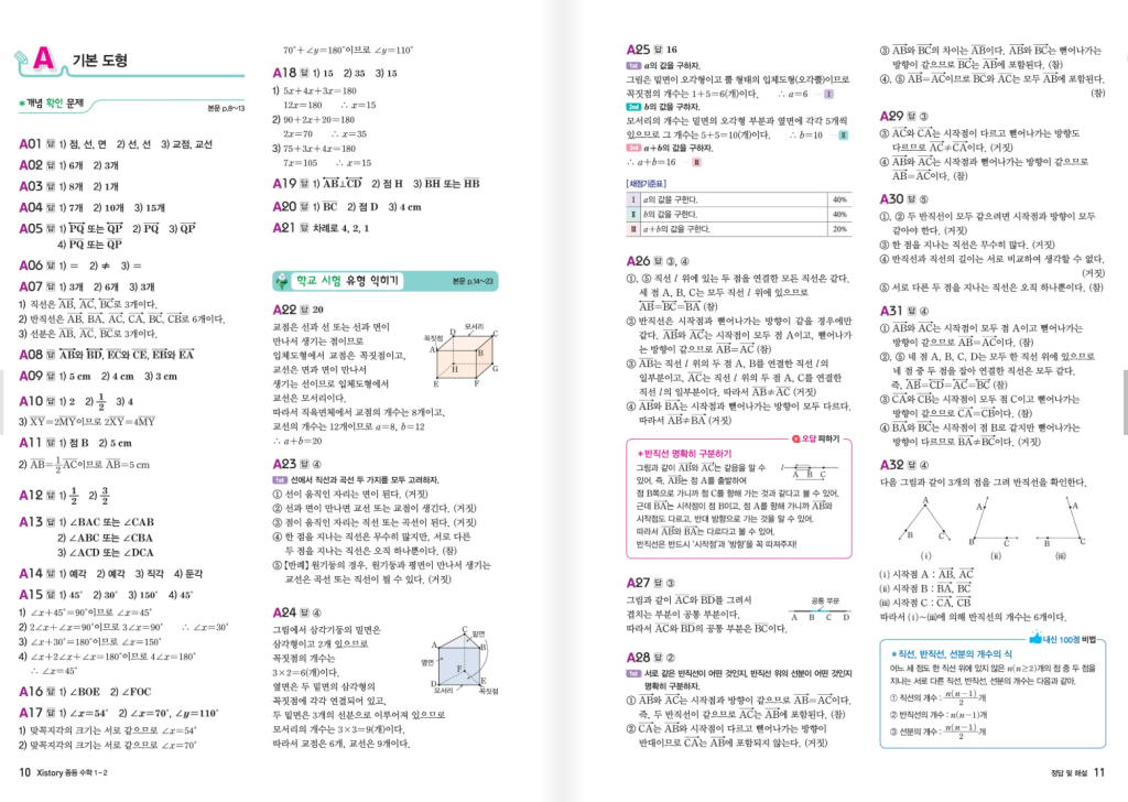 Xistory 자이스토리 중등 수학 1-2 2026년용은 중학교 1학년 2학기 수학을 체계적으로 정리해 주는 문제집입니다. 2022 개정 교육과정에 맞춰 개념을 자세히 설명하고, 바로 이어지는 확인 문제로 이해 정도를 점검하게 구성되어 있습니다. 1학기에서 배운 계산 중심 내용과 달리 2학기는 도형과 통계 비중이 커지기 때문에, 개념을 정확히 이해하지 않으면 문제에서 쉽게 흔들릴 수 있습니다. 이 교재는 개념과 유형을 연결해 반복 연습하게 해 주어 학교 시험 대비에 안정적인 흐름을 만들어 줍니다. 아래 자이스토리 수학 중1-2 답지 링크를 올려두겠습니다.