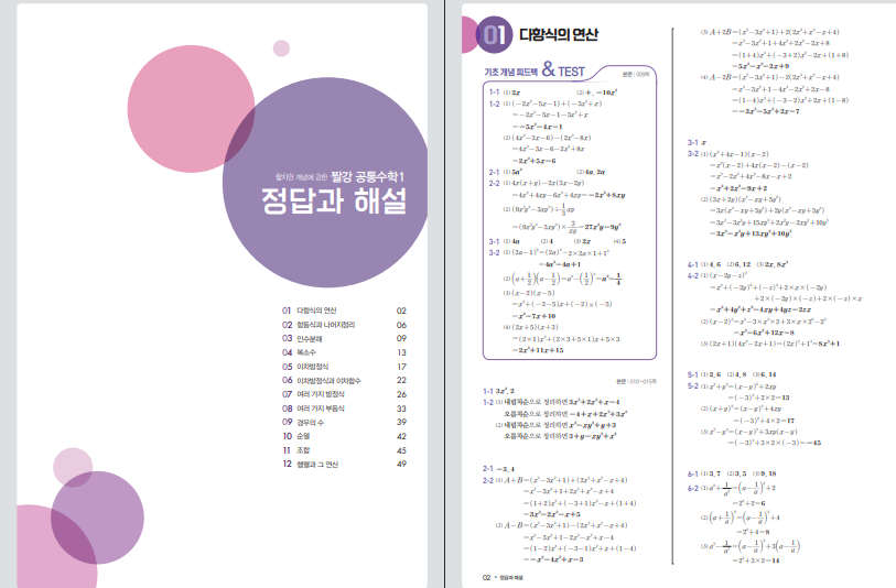 위 링크를 통해 고등 짤강 공수1 답지를 열람할 수 있습니다. 내용 구성은 중학교 과정에서 다진 연산·식의 감각을 고등 수준의 논리와 표기 습관으로 끌어올리는 데 초점을 둡니다. 식의 변형과 등가 변형의 근거, 방정식·부등식 해의 해석, 함수 표현과 그래프 읽기 같은 보편적 뼈대를 촘촘히 다지고, 문항은 학교 시험에서 자주 만나는 기본형을 중심으로 배열해 ‘개념 맞춤형 연습’에 집중합니다. 덕분에 고등2학년으로 넘어갈 때 계산은 가볍고, 개념 연결은 매끄럽습니다. 학원 수업의 보조용으로, 혹은 상위 교재에 들어가기 전 워밍업용으로 쓰기에 딱 알맞은 탄력의 난이도입니다.