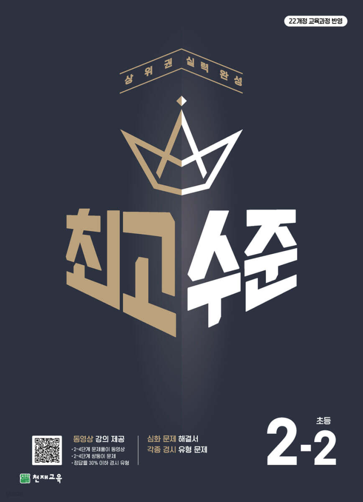 최고수준 초등수학 2-2(2025년용)은 2022 개정 교육과정을 토대로 2학년 2학기 핵심을 심화 난도로 다지는 상위권 대비 교재입니다. 한 권 안에서 교내 심화부터 교외 경시 유형 맛보기까지 이어지도록 설계해, 계산력·개념 이해·응용력을 단계적으로 끌어올립니다. 특히 동일 학년 전 학기권에서 호평받은 구성과 학습 동선이 그대로 이어져 학기 전환기의 연결 학습에 유리합니다. 아래 최고수준수학 초2-2 답지 pdf 파일을 올려두도록 하겠습니다. 표지를 꼭 확인하시길 바랍니다.