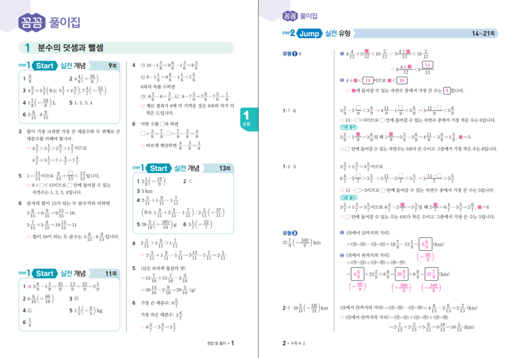 이번 4-2의 학습 범위는 ‘분수·소수의 덧셈과 뺄셈, 삼각형·사각형·다각형, 꺾은선그래프’로, 수·연산의 깊이와 도형 추론력, 자료 해석을 균형 있게 끌어올립니다. 시리즈 후기들처럼 분수·소수 영역은 계산 실수 잡는 루틴을, 도형 단원은 성질을 활용한 증명식 사고를, 그래프 단원은 ‘읽기→비교→추론→식 세우기’로 연결하는 사고 틀을 만들어 줍니다. 결과적으로 ‘맞혔는가’보다 ‘왜 그렇게 풀었는가’를 설명하는 힘이 함께 자랍니다.