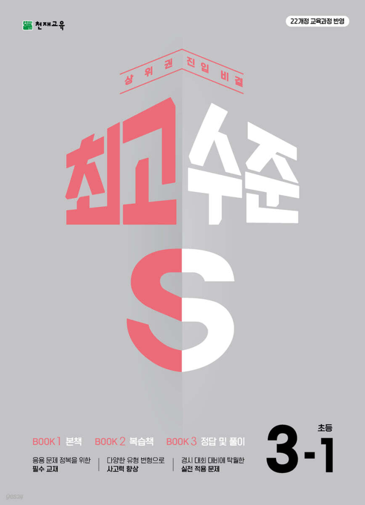 최고수준 S 초등 수학 3-1(2025년용)은 심화를 본격적으로 밟기 시작하는 3학년에게 “개념의 정확성 + 문제해결 절차”를 동시에 잡아 주는 준심화 교재입니다. 2022 개정 교육과정과 정합성을 맞추되, 본책·복습책·정답 및 풀이의 3종 구성으로 하루 학습과 주간 복습 루틴을 간단히 세울 수 있게 했습니다. 심화서를 부담스러워하는 아이도 교과 핵심을 간결히 훑고, 실제 풀이에 쓰이는 개념·전략을 단계적으로 익히며 상위권 진입 흐름을 타기 좋습니다. 아래 최고수준수학S 3-1 답지 PDF를 첨부해두었습니다. 표지를 꼭 확인하시길 바랍니다.