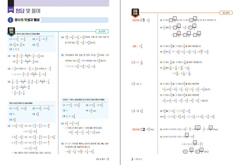학습 흐름의 중심은 활용개념→유형변형→실전적용 3단계입니다. 먼저 그림·모형·예시로 개념을 직관화하고, 대표유형 예제에서 제시하는 ‘해결 솔루션’을 따라 하며 풀이 순서를 손에 익힙니다. 이어 조건만 달라진 변형 문항으로 전이를 연습하고, 마지막에 유사 문제로 스스로 이해도를 점검합니다. 복습책에는 유형변형·실전적용의 닮은꼴 문제가 수록되어 같은 구조를 다른 수치로 반복하며 정확도와 속도를 동시에 끌어올립니다. 오답은 ‘실수 원인 한 줄→바로잡은 풀이 한 줄’로 기록하면 재발을 크게 줄일 수 있습니다. 아래 링크를 통해 최고수준S 4-2 답지를 열람할 수 있습니다.