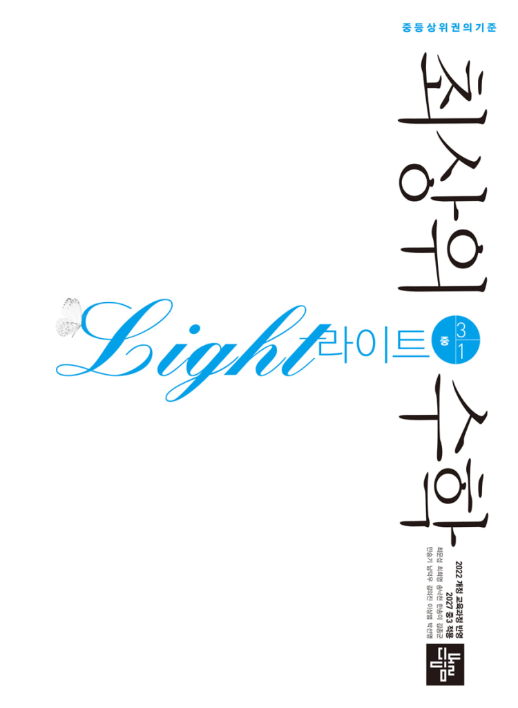 최상위수학 라이트 중 3-1 (2027년)은 중학교 3학년 1학기 수학을 상위권 수준으로 끌어올리고 싶은 학생에게 적합한 교재입니다. 2022 개정 교육과정을 반영한 최신 교재이며, 기본 개념서와 심화 교재 사이를 연결해주는 역할을 합니다. 난이도는 ‘라이트’라는 이름처럼 너무 어렵지는 않지만, 단순 계산을 넘어 사고력을 요구하는 문제들이 포함되어 있어 실력을 한 단계 올리는 데 도움이 됩니다. 특히 중3 1학기는 고등 수학으로 이어지는 핵심 시기이기 때문에, 개념을 정확히 이해하고 응용하는 연습이 중요합니다. 최상위수학 라이트 중3-1 답지 pdf 올려두겠습니다.