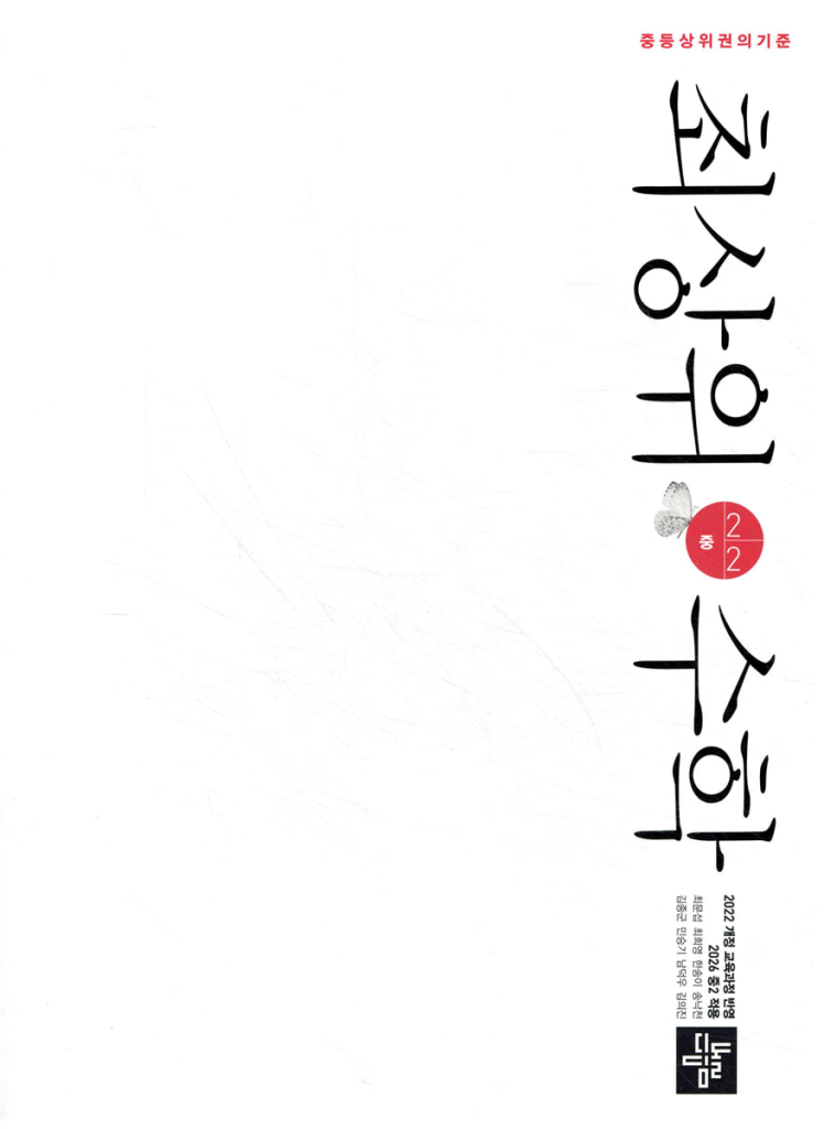 최상위수학 중 2-2는 중학교 2학년 2학기 수학을 심화 수준까지 공부하고 싶은 학생에게 잘 맞는 교재입니다. 2022 개정 교육과정을 반영한 책이며, 난이도도 어려움으로 표시되어 있어 기본 문제집보다는 상위권 학생용에 더 가깝습니다. 2학기에서 중요한 도형의 성질, 도형의 닮음과 피타고라스 정리, 확률 단원을 중심으로 구성되어 있고, 단순한 계산보다 원리를 이해하고 문제 해결 과정을 스스로 만들어 가는 힘을 요구하는 편입니다. 학교 시험에서 높은 점수를 목표로 하거나, 중등 수학을 탄탄하게 마무리해서 이후 고등수학까지 연결하고 싶은 학생에게 적합합니다. 아래 최상위 중2-2 답지 PDF 파일을 올려두도록 하겠습니다.