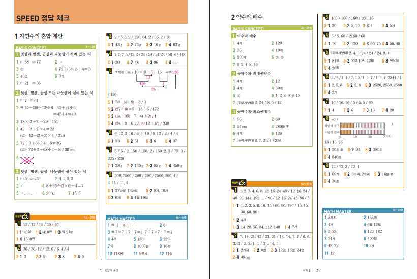 이 교재는 자연수의 혼합 계산, 약수와 배수, 대응 관계, 약분과 통분, 분수의 덧셈과 뺄셈, 다각형의 둘레와 넓이 등 5학년 1학기 전 범위를 체계적으로 다루고 있습니다. 각 단원은 개념 설명과 문제 풀이가 자연스럽게 이어지도록 구성되어 있어 학습 흐름이 끊기지 않으며, 기본 개념을 충분히 이해한 뒤 점차 심화 문제로 확장되는 구조를 가지고 있습니다. 특히 분수와 약수, 배수와 같은 중요한 개념을 깊이 있게 다루어 이후 학년 학습까지 연결되는 기반을 만들어 줍니다. 아래 링크로 최상위s 초등수학 5-1 답지 열람이 가능하도록 안내드립니다.