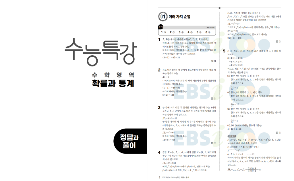 EBS 수능특강 수학영역 확률과 통계은 2027학년도 수능을 준비할 때 확률과 통계를 가장 표준적인 흐름으로 잡아주는 연계교재입니다. 이 과목은 계산이 어렵다기보다, 문제에서 조건을 어떻게 읽고 경우를 어떻게 나눌지에서 점수가 갈립니다. 특히 조건부확률이나 확률분포 쪽은 ‘말’을 잘못 해석하면 식을 아무리 예쁘게 세워도 오답이 나옵니다. 그래서 처음부터 기출 감각이 섞인 교재로 개념을 잡고, 같은 실수를 반복하지 않게 훈련하는 게 중요합니다. 아래 수능특강 확통 답지 pdf 올려두겠습니다.