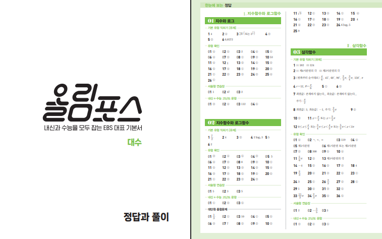 EBS 올림포스 대수 (2026년)는 2022 개정 교육과정을 반영한 고등 수학 기본서로, 내신과 수능을 함께 준비하려는 학생에게 맞는 교재입니다. 많은 고등학교에서 부교재로 선택하고 있을 만큼 큰 사랑을 받고있으며, 인기 있는 문제집중 하나입니다. 아래 ebs 올림포스 대수 답지 pdf 파일을 첨부해두었습니다. 교육과정이 바뀌었으므로 표지를 꼭 확인하시길 바랍니다. 필요하신 분들은 이용하시길 바랍니다.