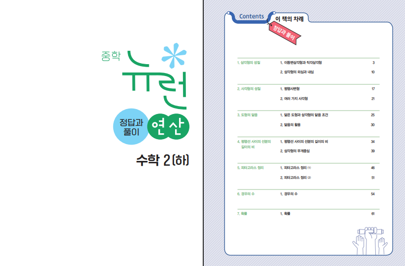 구성은 개념 학습 → 유형별 문제 → 대표 문제 → 반복 연습으로 이어지는 구조로 되어 있어 연산 능력을 효과적으로 강화할 수 있습니다. 특히 앞에서 배운 개념을 다시 활용하는 문제 구성이 많아 자연스럽게 복습이 이루어지며, 반복 학습을 통해 계산 실수를 줄이는 데 도움을 줍니다. 실제 리뷰에서도 단계가 잘 나누어져 있어 이해하기 쉽고, 혼자서도 충분히 학습이 가능하다는 점이 장점으로 언급되고 있으며, 연산 실력을 안정적으로 끌어올리는 데 효과적이라는 평가가 많습니다.
