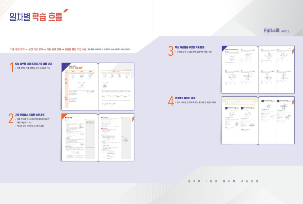 Full수록 풀수록 수능기출문제집 수학 2은 2027 수능을 준비할 때 수학2의 핵심을 기출로 빠르게 정리해 주는 교재입니다. 수학2는 함수의 극한과 연속, 미분, 적분처럼 처음엔 이해가 되는 것 같은데 문제를 풀면 자꾸 막히는 구간이 많습니다. 그래서 실전에서 자주 나오는 형태를 반복해서 몸에 익히는 게 중요한데, 이 책은 2011년 이후 전국연합과 평가원 기출문제 728제를 수록했다고 되어 있어 연습량이 넉넉합니다. 특히 하루 분량을 잡아 주는 ‘한 달 완성’ 흐름이 강조되어 있어서, 공부 계획을 세우기 어려운 학생도 진도 관리가 편합니다. 아래 풀수록 수2 수능기출 문제집 답지 pdf 올려두겠습니다.