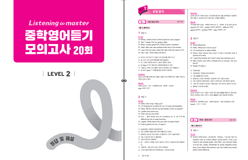 리스닝 마스터 중학영어듣기 모의고사 Level2 답지 (2025)