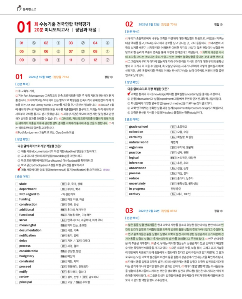 학습 구조는 간단합니다. 매일 12문제를 20분 안에 풀어 보고, 바로 채점하며 틀린 이유를 해설에서 확인합니다. 해설은 정답만 알려 주는 것이 아니라 선택지가 왜 오답인지 근거를 콕 집어 설명해 주기 때문에, 비슷한 함정에 다시 걸리지 않도록 사고 과정을 교정하는 데 도움이 됩니다. 모바일 해설 뷰어와 전 문항 해설 강의가 무료로 제공되어 이동 중에도 복습이 가능하고, 지문을 다시 읽으며 근거 문장을 표시하는 습관을 들이면 정답 도달 시간이 확실히 줄어듭니다.