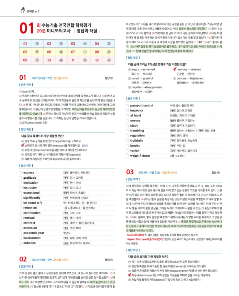 활용법은 단순하지만 효과가 분명합니다. 매일 같은 시간에 20분 실전 풀이를 하고, 바로 10분 동안 오답의 근거 문장을 찾아 표시한 뒤 단어시험지로 낯선 표현을 확인합니다. 이때 문법·어법 문항은 해설의 규칙을 한 줄 예문으로 다시 만들어 보며 외우기보다 쓰는 연습을 해 보십시오. 2주면 14회, 한 달이면 24회를 완주할 수 있어 시험 기간 사이에도 리듬을 잃지 않고 실력을 유지·상향하기 좋습니다. 개인적으로 짧은 아침자습시간이나 점심시간을 이용해 해당 교재를 푸는 것을 매우 추천합니다. 자투리 시간을 활용하기에 매우 적합한 교재입니다.