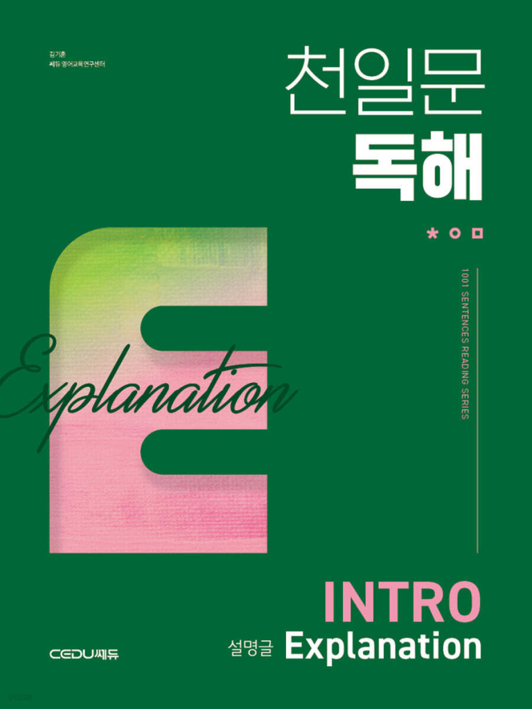 추천 루틴은 ‘하루 2~3지문, 30~40분’. 본문에서 문단 기능(정의/특징/비교/원인–결과/사례/결론)을 라벨링하고 핵심 문장·연결어를 표시한 뒤, Stage 3 도식화를 완성하고 기출로 동일 패턴을 재확인하세요. 과학·사회·심리 등 정보 밀도 높은 지문에서 정답 근거를 빠르게 특정하고 싶은 수험생, 문장 해석력은 있는데 요지·구조를 놓치는 학습자라면 이 책으로 ‘정보를 읽는 눈’을 가장 안전하게 세울 수 있습니다. 개인적으로 가장 애정하는 영어 독해 교재입니다. 본문에 천일문 독해 INTRO 설명글 답지를 첨부해두었습니다. 홈페이지를 방문하시면 더 많은 학습자료를 보실 수 있습니다.