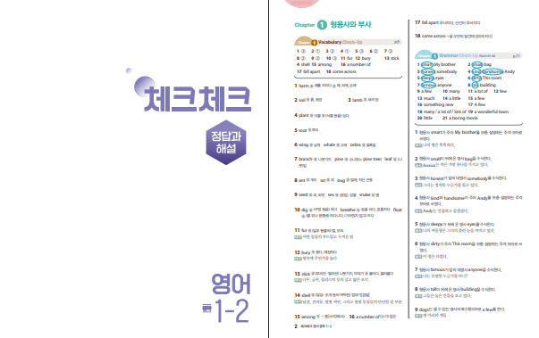 이 교재의 좋은 점은 2학기에서 갑자기 어려워지는 문장 확장 요소들을 한 번에 정리해 준다는 점입니다. 특히 비교, 전치사 접속사, 문장 형식, to부정사 동명사처럼 중학교 1학년 후반부에서 많이 틀리는 파트를 흐름으로 잡아 주는 게 매우 좋습니다. 매년 개정되므로 표지와 2022 개정 교육과정 반영 여부를 꼭 확인하시고, 본문에 22개정 체크체크 영어 중1-2 답지 pdf 도 첨부해두었으니 필요하신 분들은 이용하시길 바랍니다.