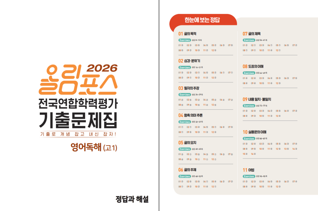 이 교재는 하루에 많은 분량을 풀기보다는, 정해진 단원을 집중해서 학습하는 방식에 잘 맞습니다. 한 단원씩 유형을 정리하고 기출 문제를 반복해서 풀다 보면 독해 속도와 정확도가 함께 올라갑니다. 이런 학습 구조 덕분에 학교 부교재로도 자주 채택되고, 학원에서도 고1 영어독해 기본 교재로 꾸준히 활용되는 교재입니다. 본문에 고1 영어독해 2026 전국연합학력평가 기출문제집 답지 파일을 첨부해두었습니다. 필요하신 분들은 이용하시길 바랍니다.