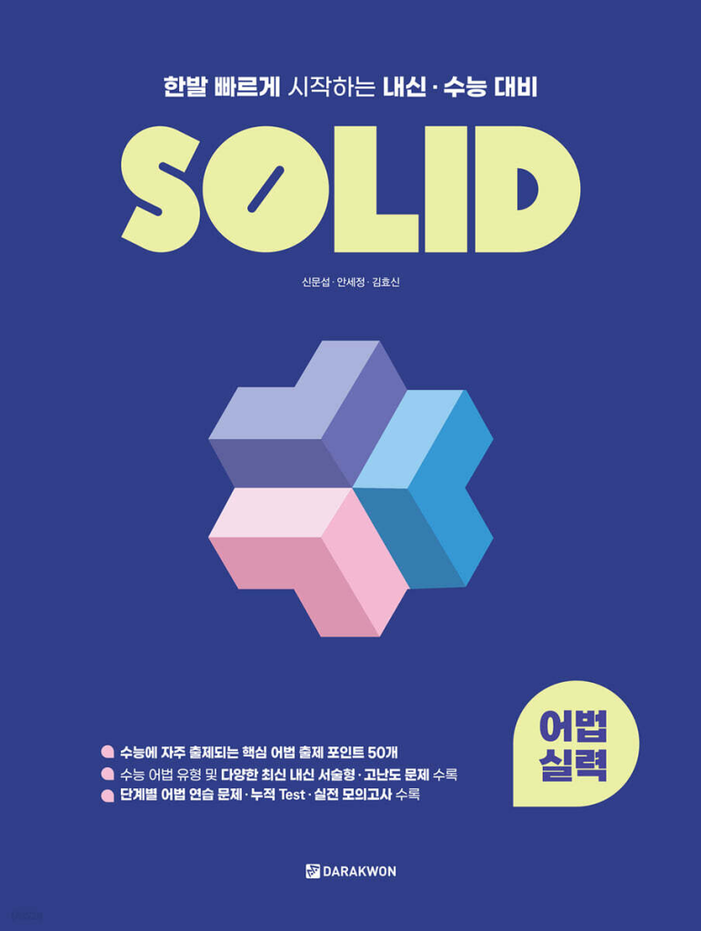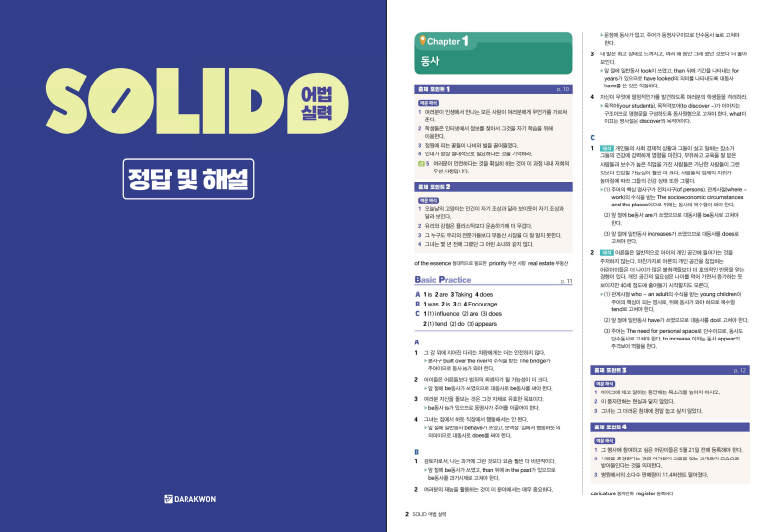 SOLID 어법 실력은 기본 문법을 아는 상태에서 점수를 더 올리기 위해 만든 어법 훈련용 교재입니다. 같은 시리즈의 어법 기본이 개념을 차근차근 다지면서 확인 문제로 다듬는 느낌이라면, 어법 실력은 시험에 자주 나오는 출제 포인트를 딱 잡아두고 그걸 반복해서 맞히는 쪽에 가깝습니다. 그래서 문법 용어를 알고 있어도 문제에서 보기 헷갈려 틀리는 학생, 내신 서술형이나 수능 어법 문항에서 실수를 줄이고 싶은 학생에게 잘 맞습니다. 아래 솔리드 어법 실력 답지 pdf 파일을 첨부해두도록 하겠습니다. 표지를 꼭 확인하시길 바랍니다.