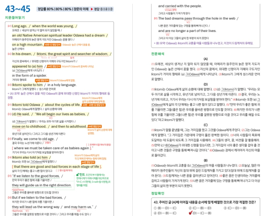 회차마다 등급컷이 제공되어 풀고 난 뒤 바로 자신의 위치를 가늠할 수 있습니다. 문항별 정답률이 표시되어 어떤 문제가 상대적으로 어려웠는지도 확인할 수 있고, 영어는 듣기 MP3를 QR로 스트리밍하거나 파일로 내려 받아 속도 조절과 문항별 구간 연습이 가능합니다. 탐구 영역은 2022 개정 교육과정에 맞춰 문항 수와 구성을 재정렬했기 때문에 고1 내신과 학평 사이에서 어색함이 줄어듭니다. OMR 카드가 들어 있어 제한 시간 안에 마킹하는 연습을 반복하면 실제 시험장에서의 손동작과 리듬을 미리 만들어 둘 수 있습니다. 아래 링크를 통해 2026 마더텅 예비고1 3월 모의고사 답지를 열람할 수 있습니다.